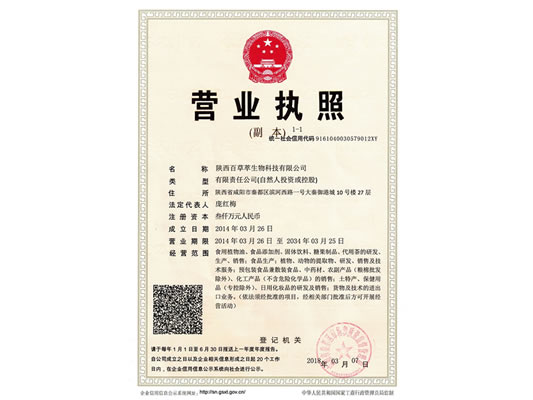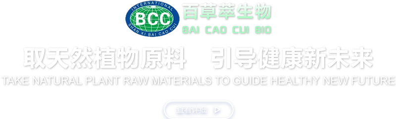 陜西百草萃生物科技有限公司,位于陜西省咸陽市秦都區(qū)濱河西路1號大秦御港城,公司成立于1996年,主要從事天然植物種植、研發(fā)、生產(chǎn)、加工、銷售為一體的高科技企業(yè)。主營醫(yī)藥原料、保健品原料、化妝品原料,精細化工原料。公司致力于人類健康保護事業(yè)“ 以科技為動力,以質(zhì)量求生存” 的本質(zhì),依托陜西高新科技技術(shù)人才和科研優(yōu)勢,已形成多學(xué)科、全方位、高層次的技術(shù)管理精英團隊。充分利用秦巴山區(qū)的天然藥物資源,歷經(jīng)多年發(fā)展為打造百草萃生物品牌奠定了基礎(chǔ)。